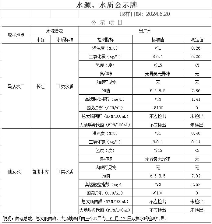2024年6月20日水质公告