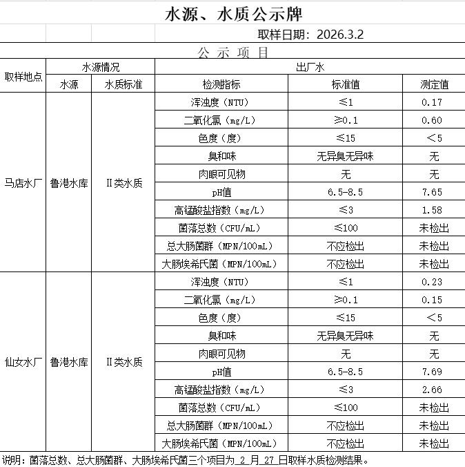2026年3月2日水质公告