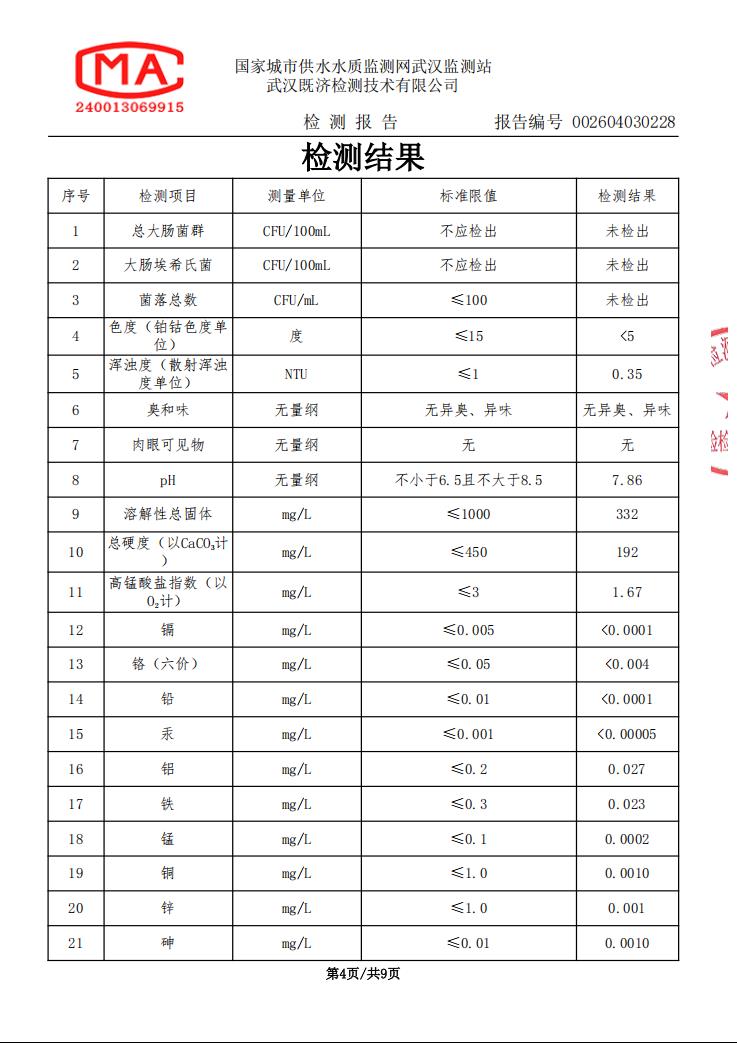 2026年4月马店水厂管网末梢水水质检测公告
