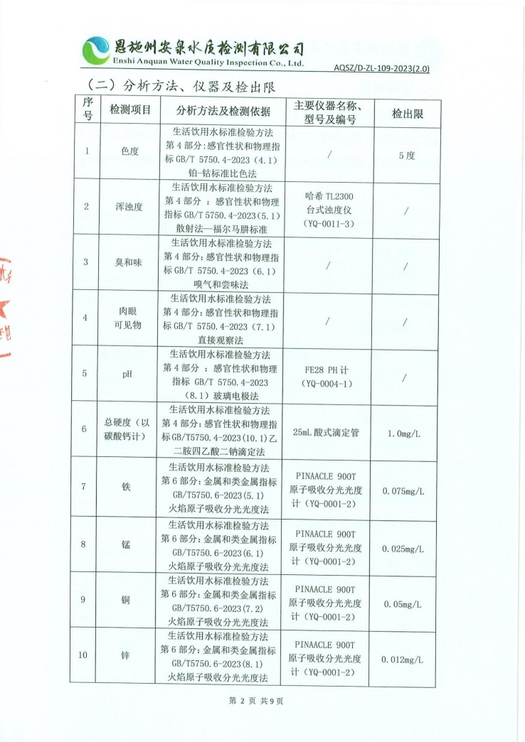 2024年11月百里洲水厂管网末梢水水质检测公告