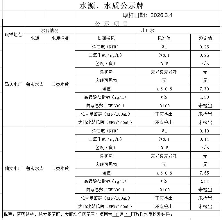 2026年3月1日水质公告