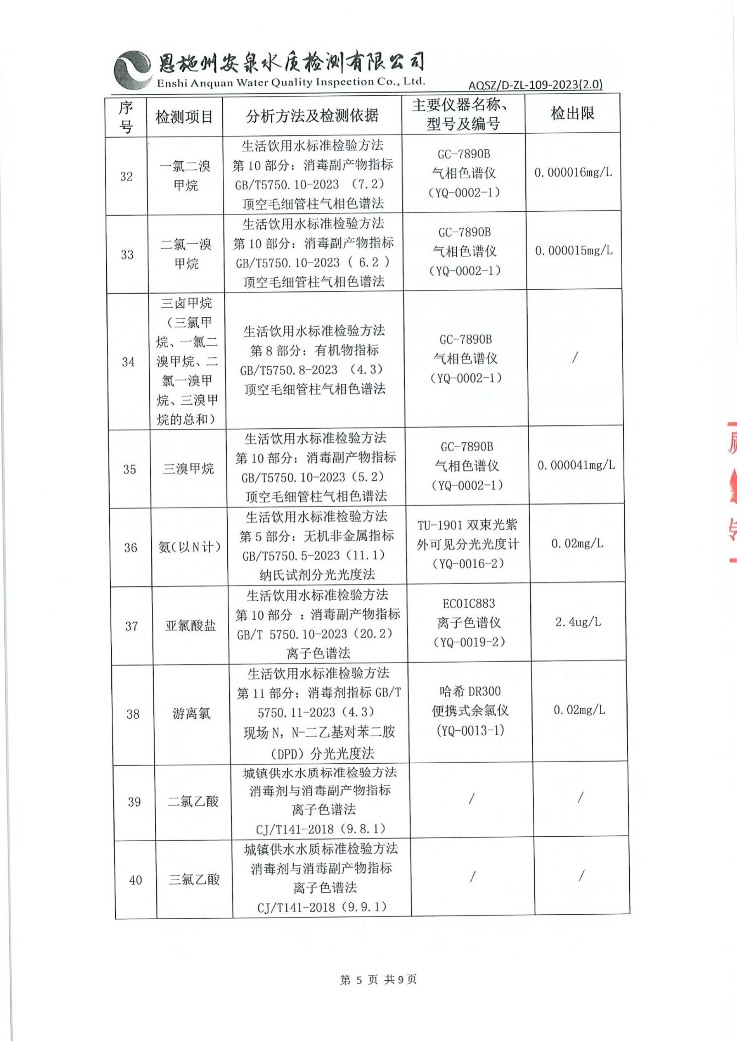 2024年10月百里洲水厂管网末梢水水质检测公告