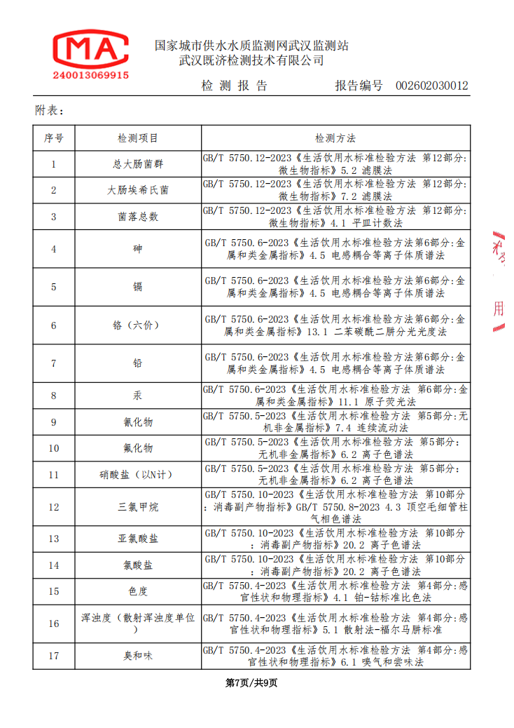 2026年2月马店水厂管网末梢水水质检测公告