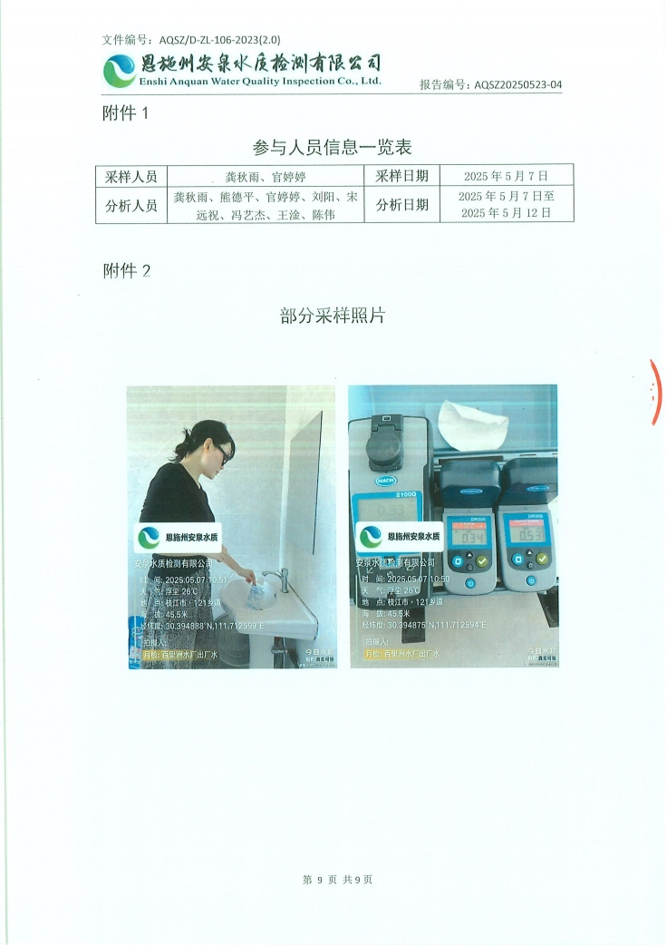 2025年5月百里洲水厂管网末梢水水质检测公告