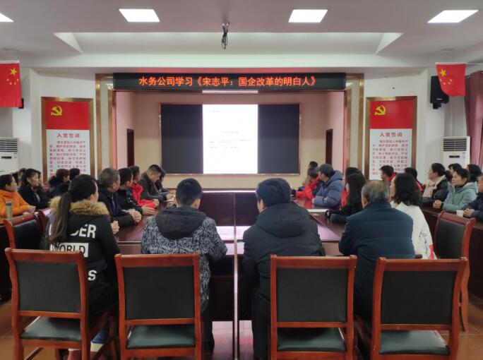 1月15日下午,水务公司在公司小礼堂举办学习贯彻党的十九届四中全会精神宣讲报告会,企业联络员市总工会副主席龚丹宣讲,水务公司全体员工参加。