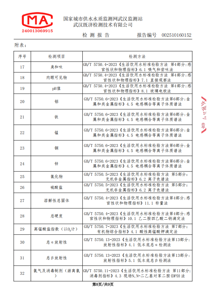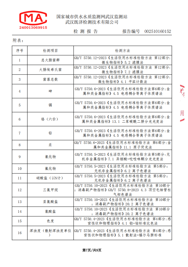 2025年10月仙女水厂二次供水末梢水水质检测公告