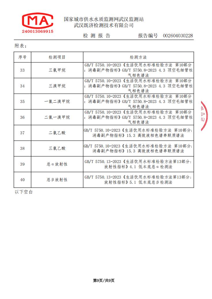 2026年4月马店水厂管网末梢水水质检测公告