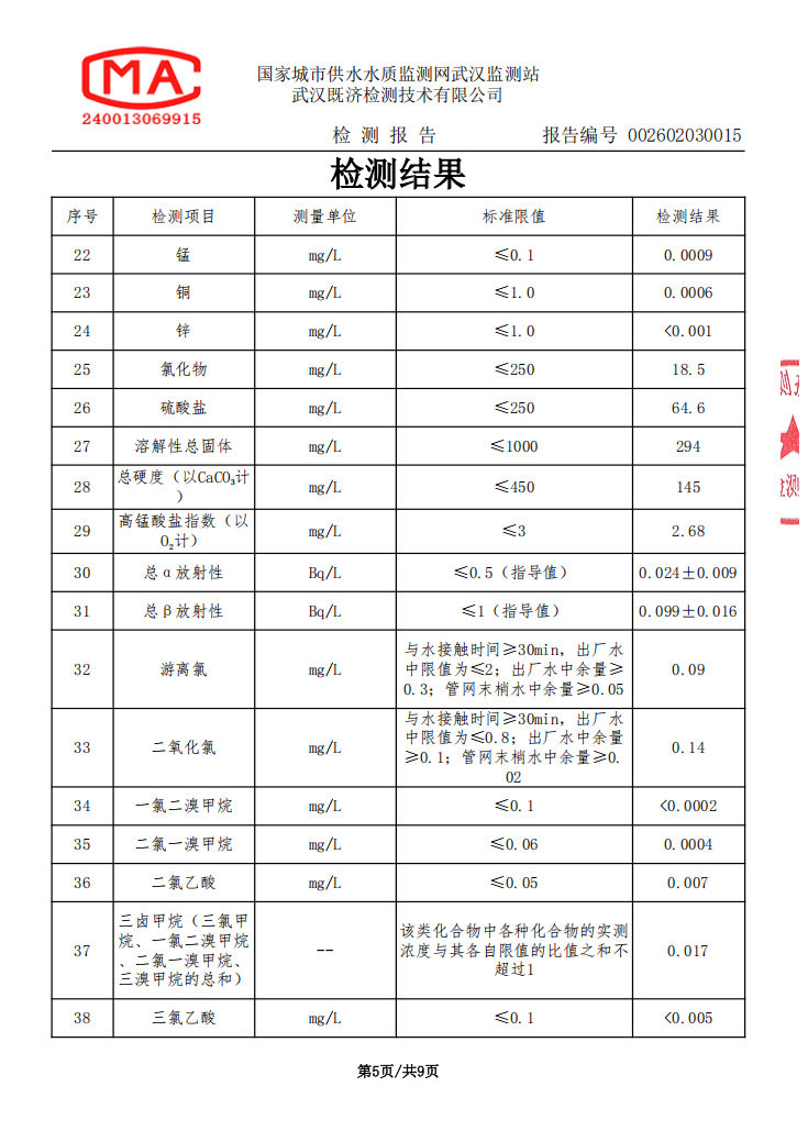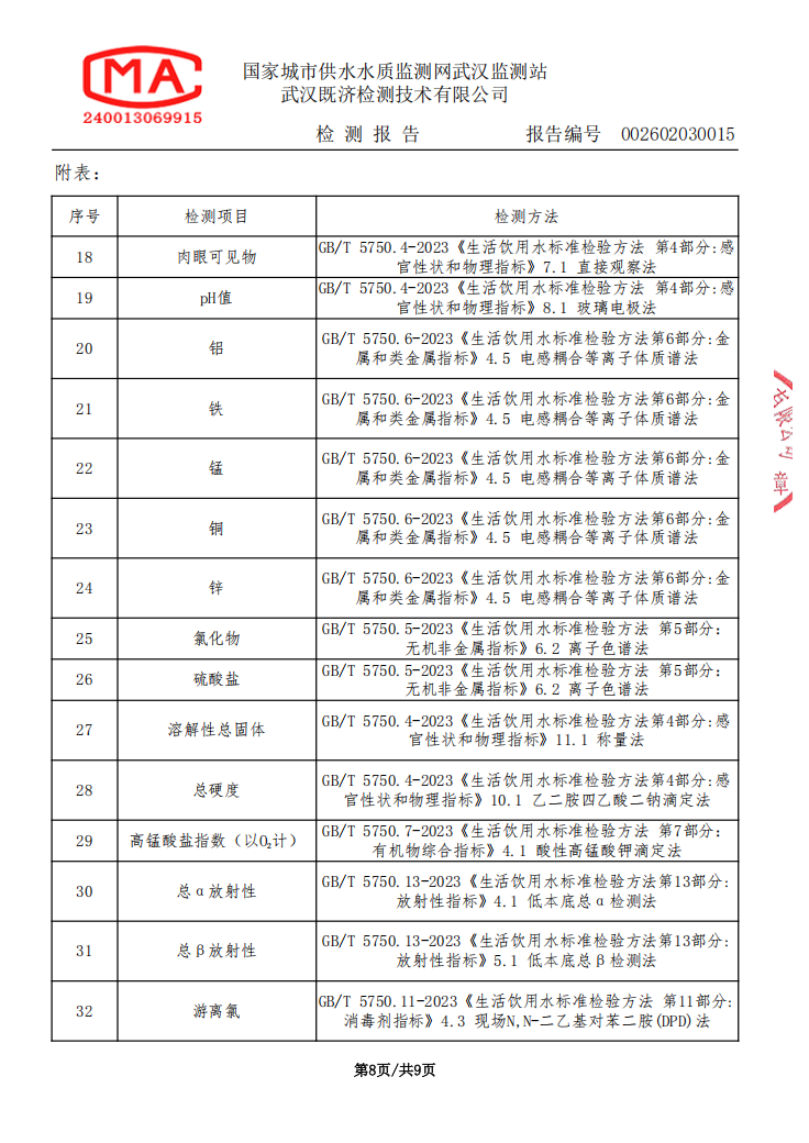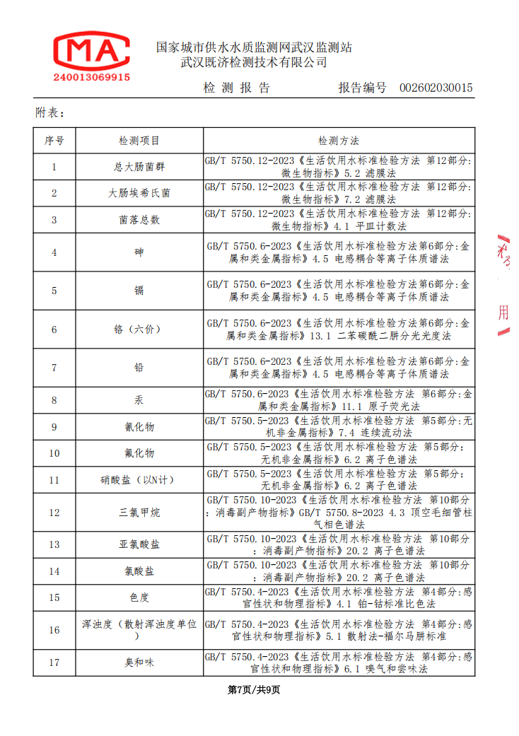 2026年2月马店水厂管网末梢水水质检测公告